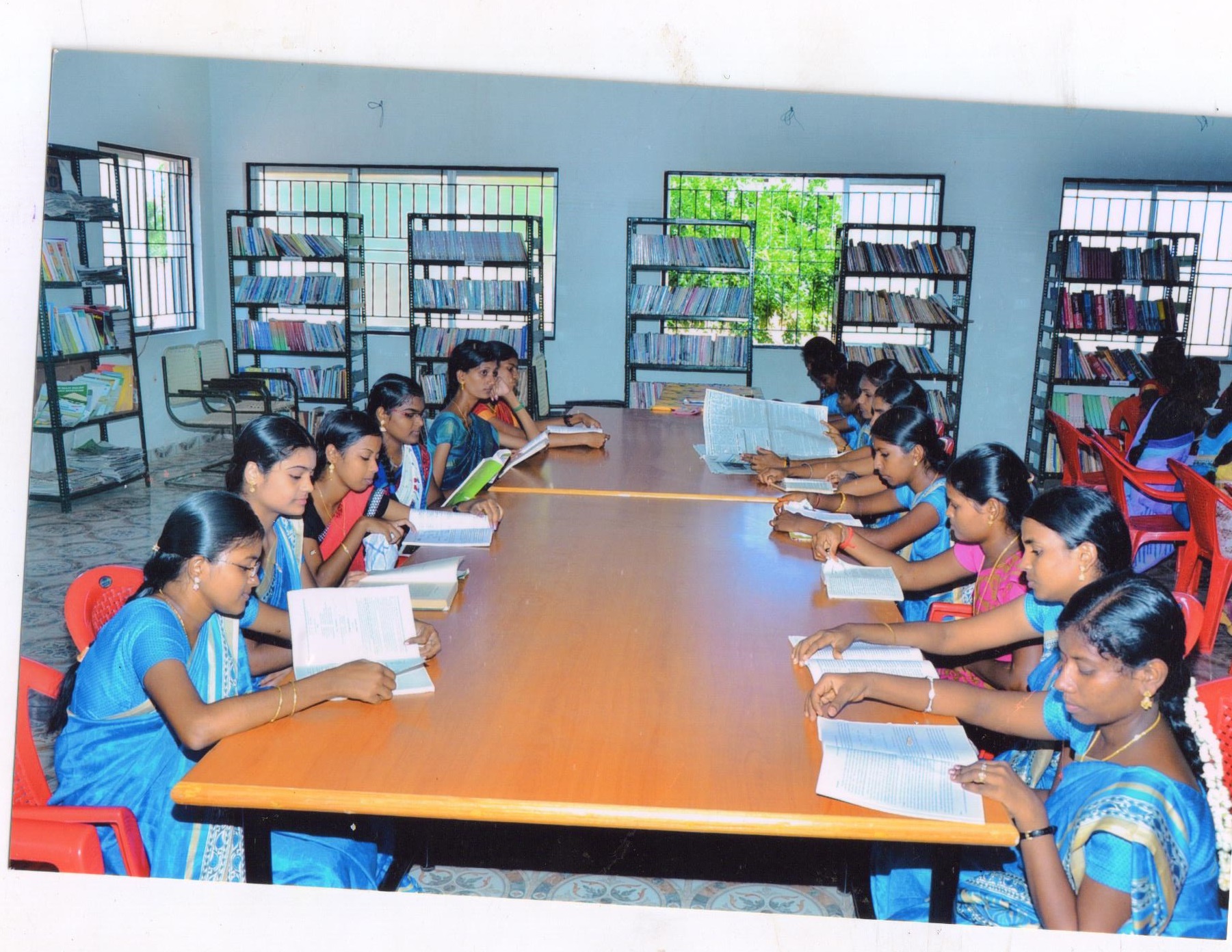 A spacious library cum reading room with the area of 1500sq.feet and 5454 books are available three hours per week is allotted within the timetable for regular work. The books are lent to the students for a week. Book bank also serves as a good resource for learning. The Library is enriched regularly with the latest edition of books, Magazines and Journals to enable students get up to – date information on varied Subject areas. To meet the requirements of needy students. The college has started a book bank, The Library service is catalogued and installed with reprographic machines for student and faculty use.