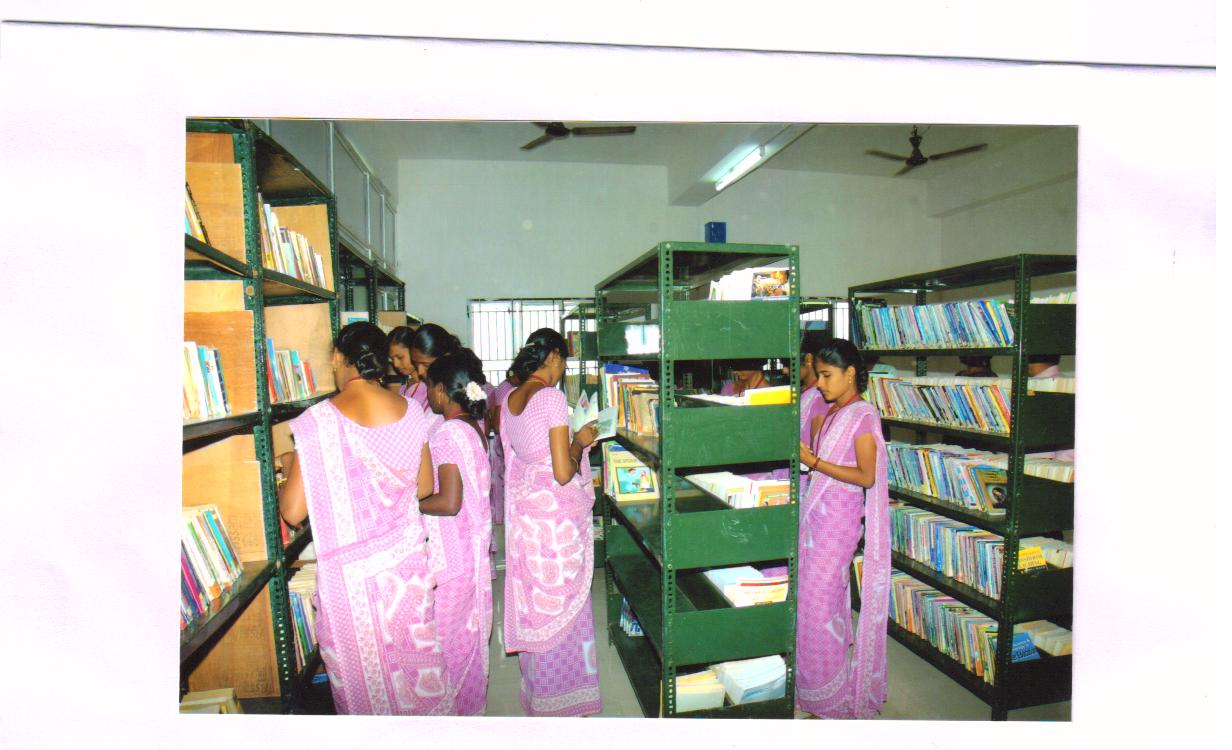 A spacious library cum reading room with the area of 1500sq.feet and 5454 books are available three hours per week is allotted within the timetable for regular work. The books are lent to the students for a week. Book bank also serves as a good resource for learning. The Library is enriched regularly with the latest edition of books, Magazines and Journals to enable students get up to – date information on varied Subject areas. To meet the requirements of needy students. The college has started a book bank, The Library service is catalogued and installed with reprographic machines for student and faculty use.
